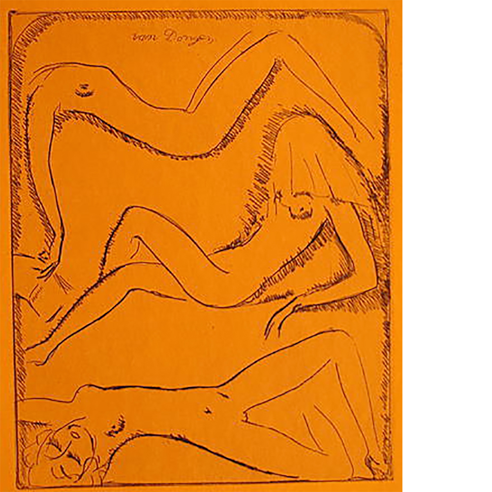 ETCHING KEES VAN DONGEN – 3 Nudes on orange